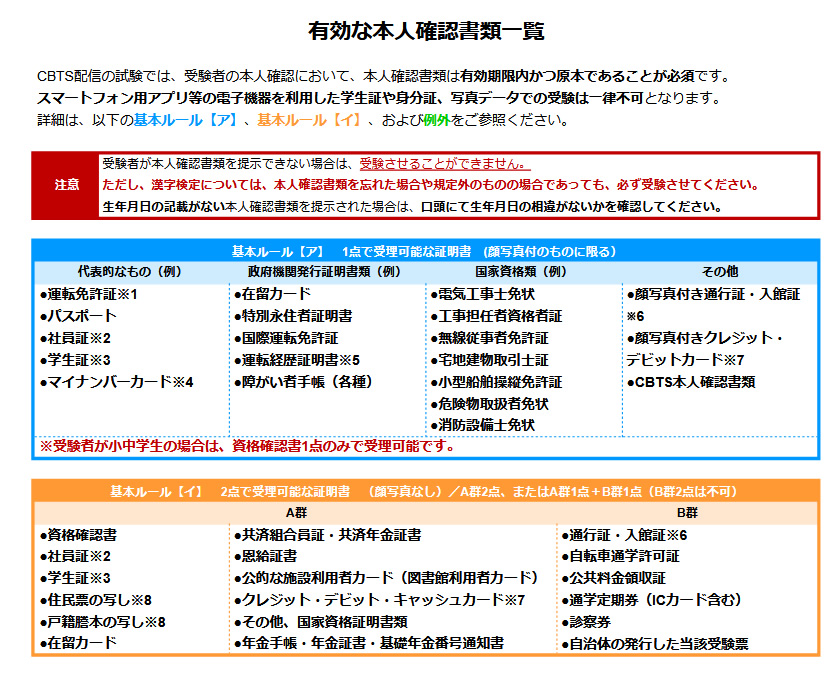 当日の受験が不可能となりますので、必ずお忘れの無いよう、お持ちください。